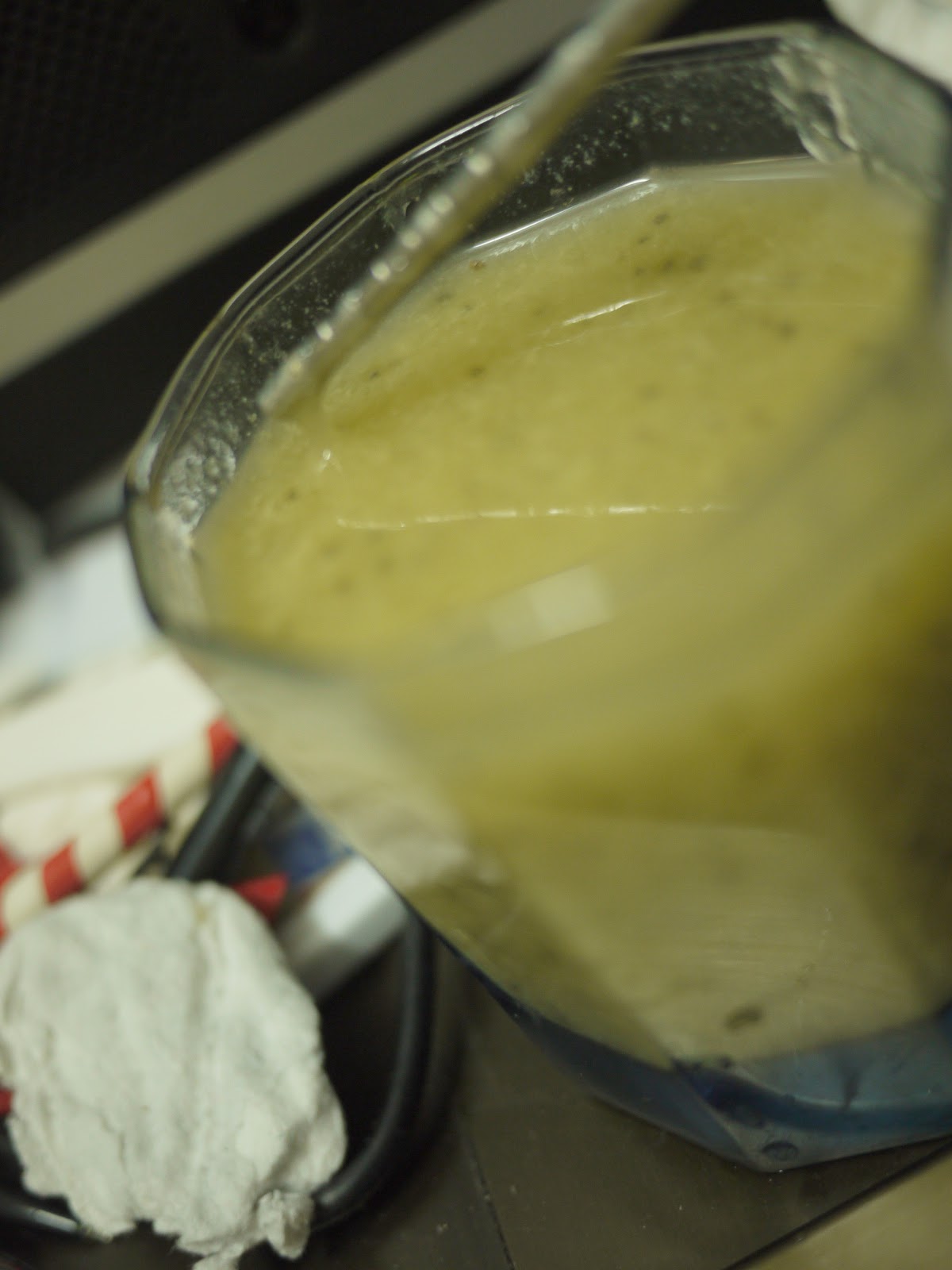 倒入250CC的水以後再用湯匙輕輕攪拌
