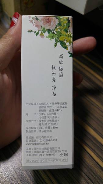 裡頭含的二耳草萃取及卵磷脂能夠抗老及滋潤皮膚,