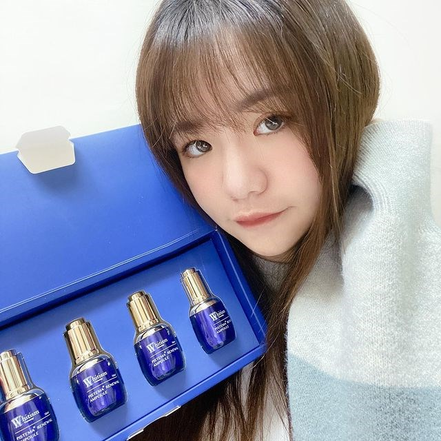 『Maria Von Whitism新生無齡安瓶 』分子很小,吸收速度快,一開始使用小瞳是先擦是半邊臉去看效果