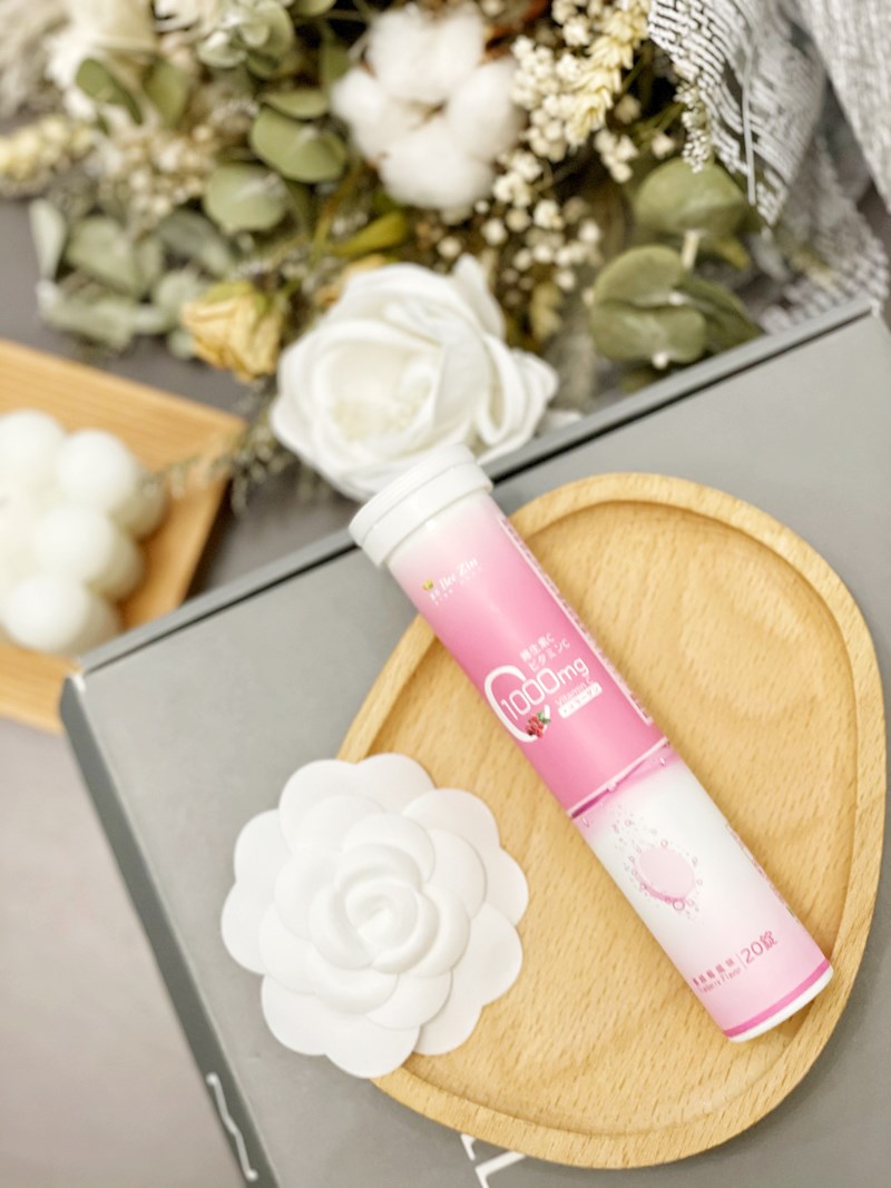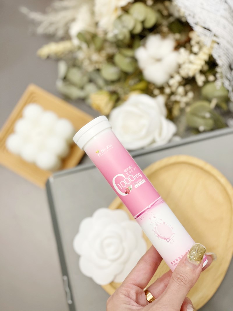 「康萃 維生素C1000膠原發泡錠」是超好喝的粉紅蔓越莓口味,直接放在白開水裡,