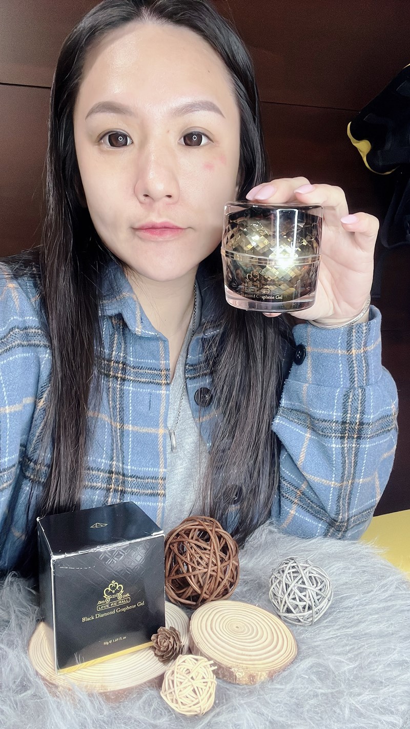 打開瓶身,裡面凍狀質地,是來自含石墨烯的自然顏色.成分更添加鑽石粉及珍珠粉... 等珍貴成分