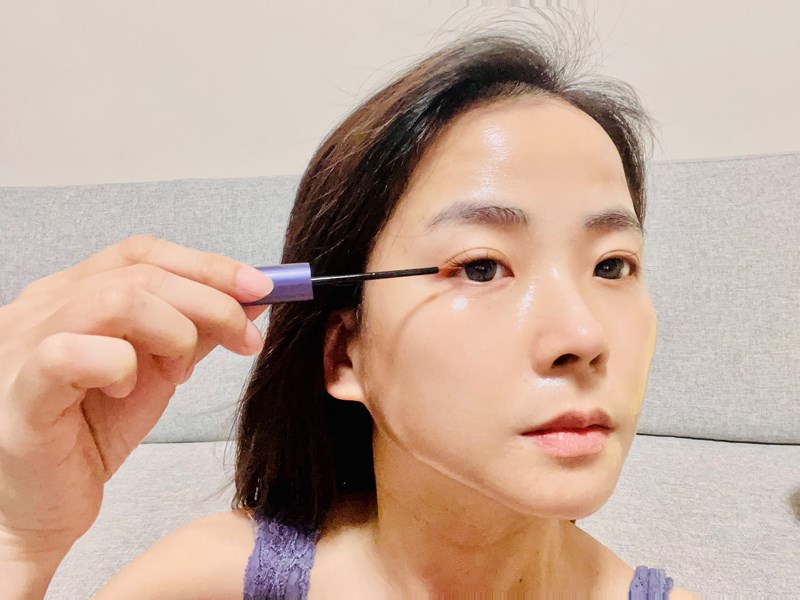 用法和眼線液相同,從眼頭刷到眼尾,將精華液塗抹在睫毛根部。