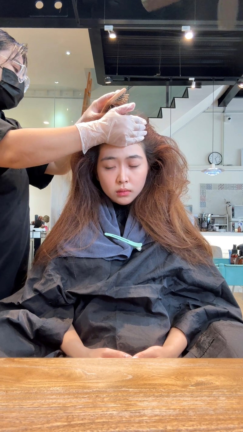 首先會先用氣墊梳梳整頭髮並按摩💆♀️,