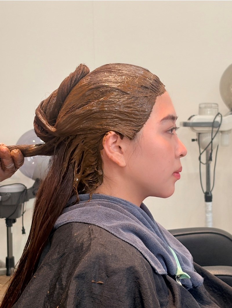 養護泥塗抹完後會用儀器蒸頭髮靜置