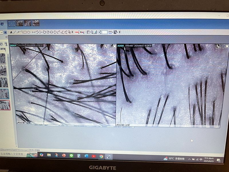 502草本滋養液加強包濕→頭皮顯微鏡檢測→吹整頭髮
