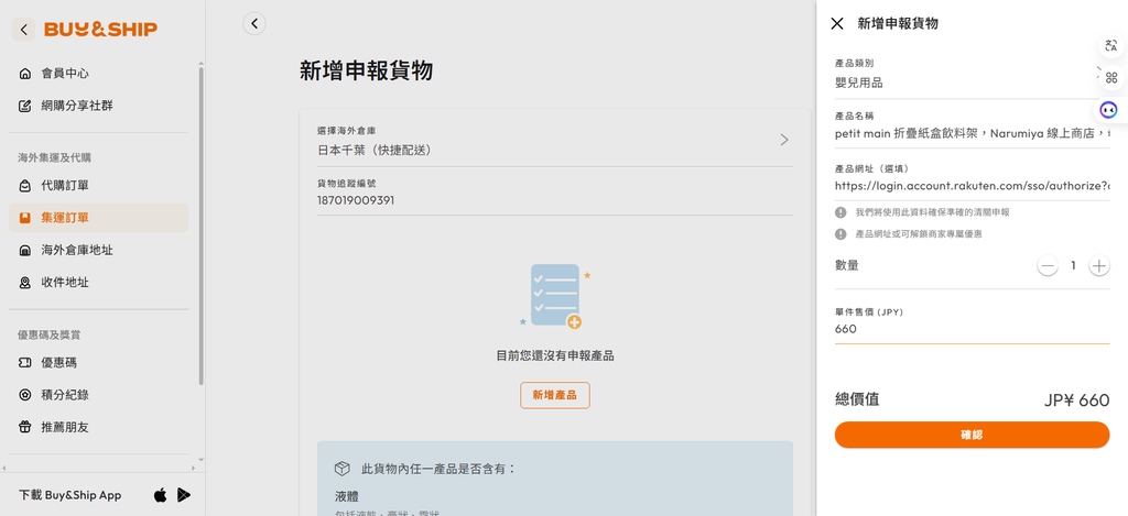 (建議大家一收到海外電商的出貨電郵就到Buy&Ship申報貨件喔)