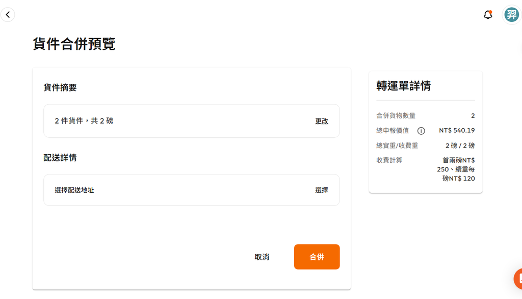 貨物抵達倉庫後,會發信到電子信箱中提醒您合併轉運