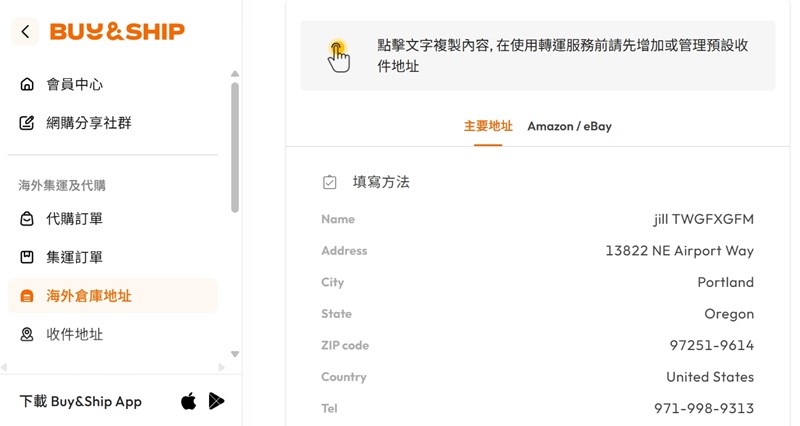 然後將商品寄到 Buy&Ship 當地倉庫,