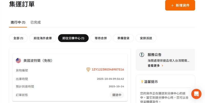 完成申報後,就等包裹寄到海外倉庫~ 這裡我們不用做什麼
