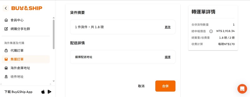 這裡可以選擇合併集貨,