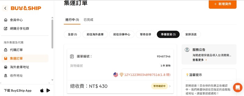 但還是有些無法配送,這時候Buy&Ship真的就是我的好幫手,