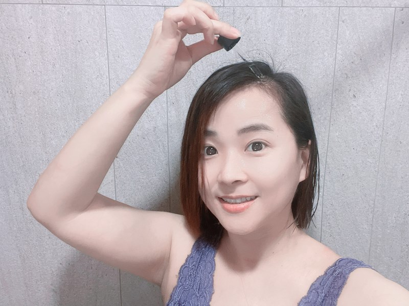 再以指腹輕輕按摩頭皮,讓養髮液吸收。