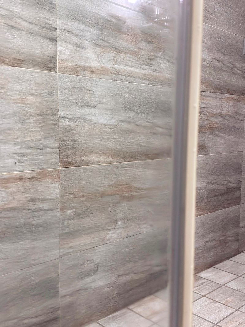 玻璃門、磁磚甚至壓克力材質,只要有使用水,噴到就會殘留,很快就白白霧霧一片。