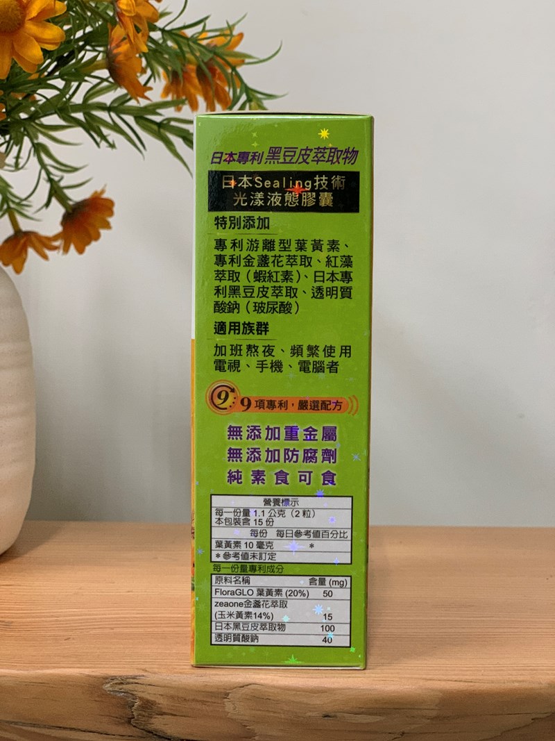 • FloraGLO® 游離型葉黃素 (Lutein): 擁有80篇以上研究報告和多國專利認證,分子量小,吸收效率高!