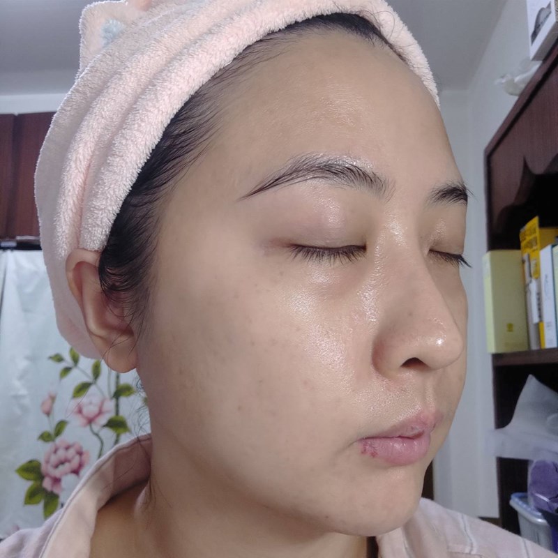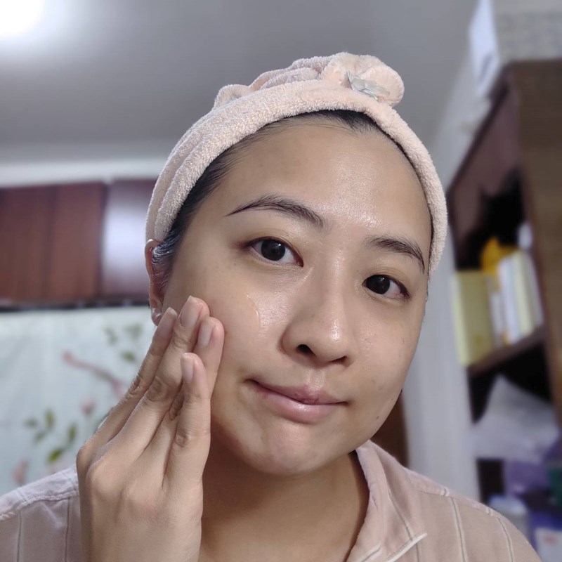 早上使用時質地清爽、吸收超快,不會在臉上留下黏感,