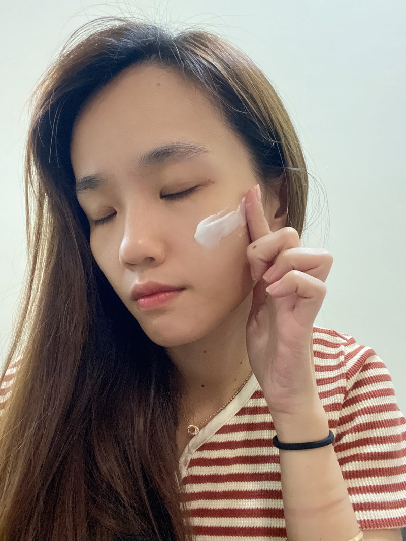 質地是 綿密的奶霜狀,推開後完全不卡、好延展,吸收速度比我預期更快。沒有負擔感,也不會悶住毛孔。