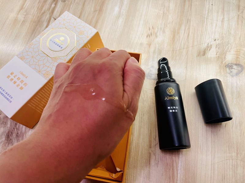 把「Almiya 時光無痕精華液」作為打好肌底使用,為後續保養熱身,幫助肌膚恢復彈性,