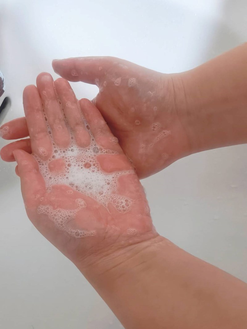 沖洗後肌膚摸起來是柔嫩、水潤的狀態,沒有乾澀感,