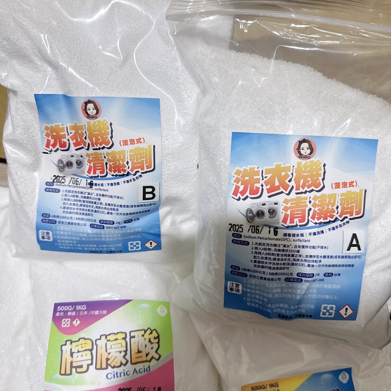 #化工小妹 #室內清潔5件組 #過碳酸鈉 #清除陳年頑垢 #清洗衣物 #去汙 #漂白 #要用溫熱水40度 #小蘇打 #碳酸氫鈉 #去除油垢 #比例1比30 #檸檬酸 #去污 #浴室清潔 #熱水壺等小家電去垢 #除臭噴霧 #防止異味 #鞋櫃 #廁所 #襪子 #洗衣機清潔劑 #除垢A+B #免拆洗衣機 #去除洗衣槽水垢