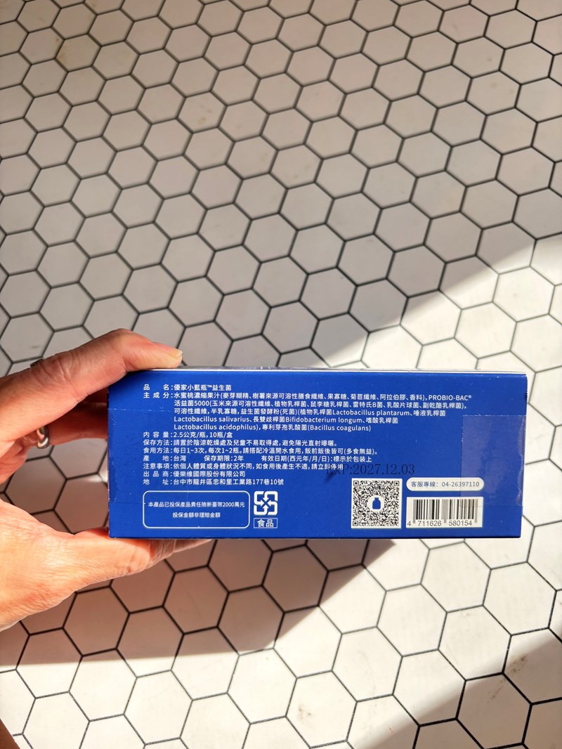 這款被大家暱稱為 優家爆款小藍瓶益生菌,小小一支藍色瓶身超級吸睛。
