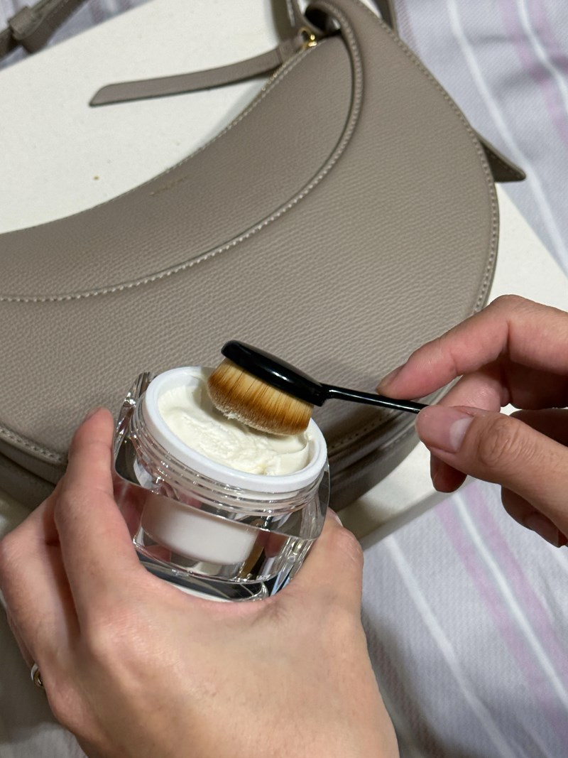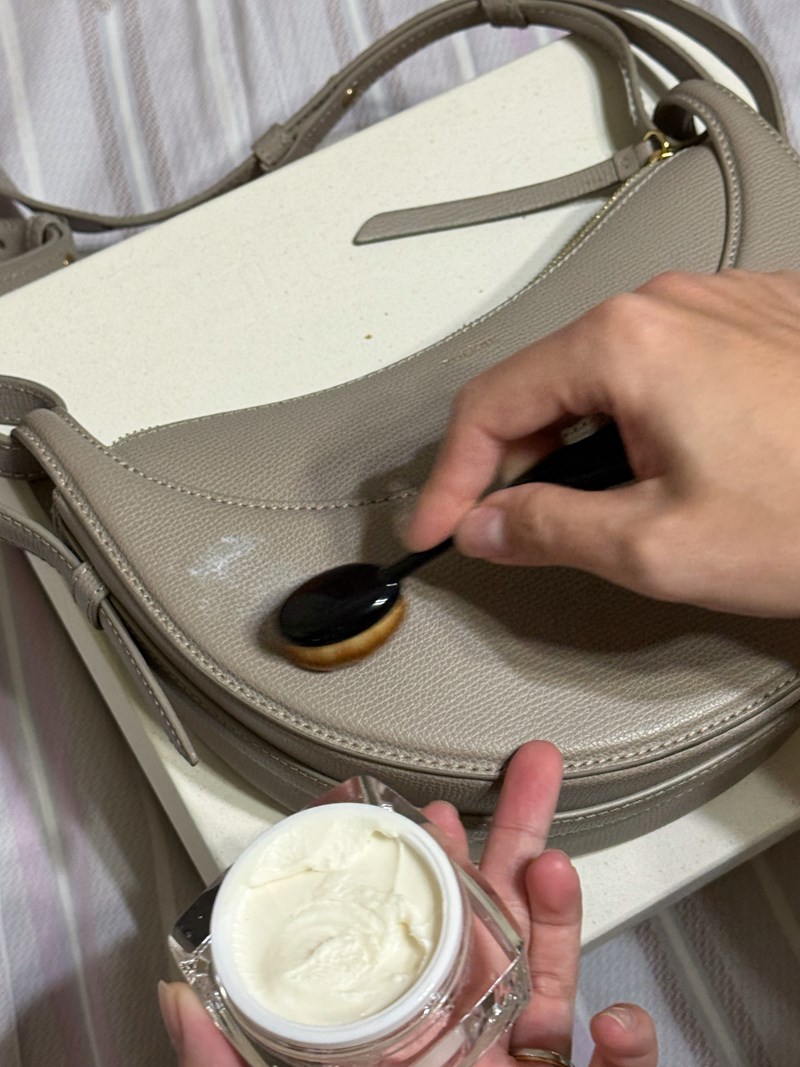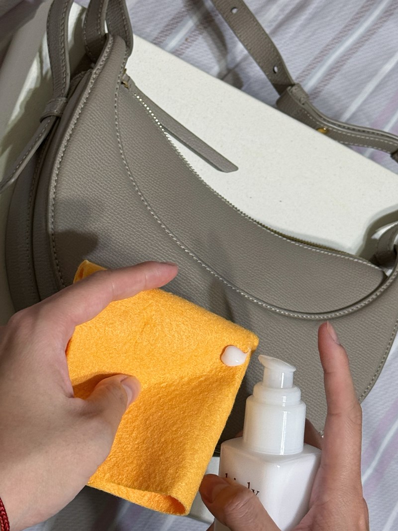 整個保養流程也很簡單:先把皮革表面灰塵輕輕擦掉,再取適量乳液均勻塗抹,最後以畫圓的方式推開。