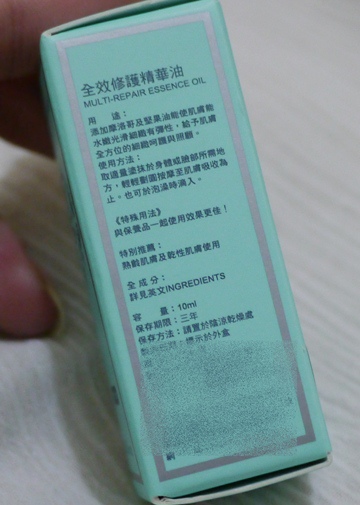因為收到的是10ml的試用品,所以我只將全效修護精華油用於臉部肌膚。