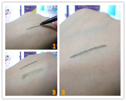 剛開始看到色號是復古綠有點擔心,因為綠色畫的好是妖姬畫不好會變成妖怪,而我又是化妝很兩光的人,原本還很擔心,結果在手上試色後就安心嚕!因為這個綠色實在太低調了,顏色比墨綠色還深並帶著金綠色亮粉