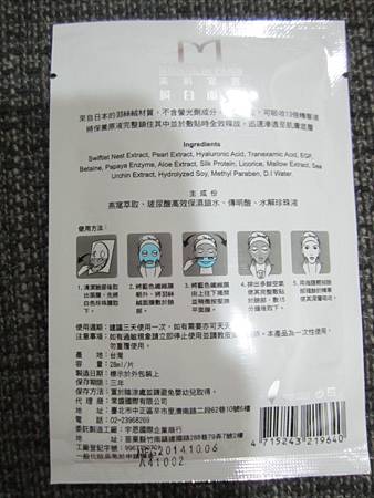 謝謝【女人知己試用大隊】提供的–美肌宣言燕窩珍珠瞬白面膜