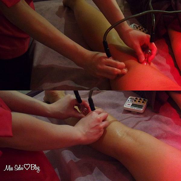 →使用前跟上面的步驟相同一樣都要擦上獨家的有機纖體精油(整腿)~
