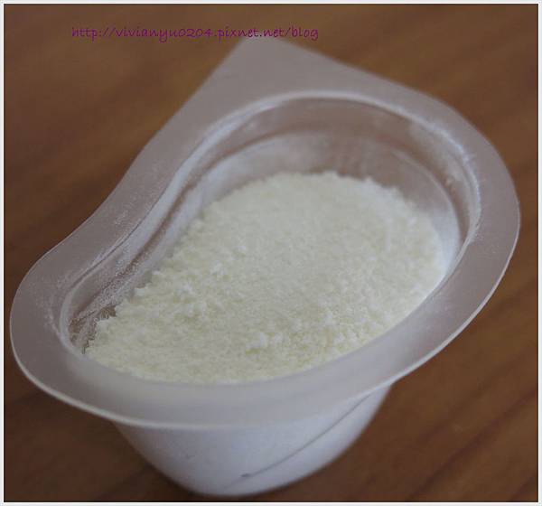 打開裡面,膠原蛋白呈現淡黃色的粉末,有點像是奶粉的感覺!聞起來沒什麼特別的味道!