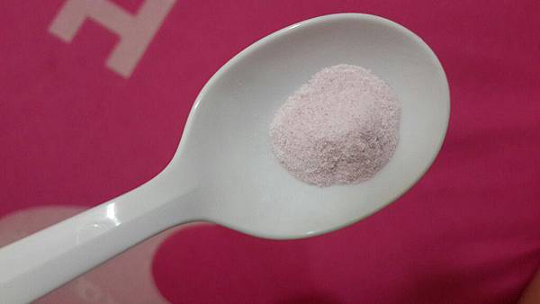 粉末是粉紅帶點粉紫色,撕開後有一股微微的香氣