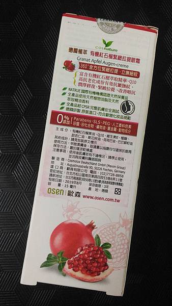 謝謝【女人知己試用大隊】提供的–CosNature有機紅石榴緊緻拉提眼霜