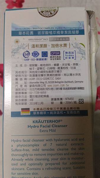想看更多 德國草本莊園KRAUTERHOF玻尿酸植萃精華潔面凝膠試用心得請到以下網址>>