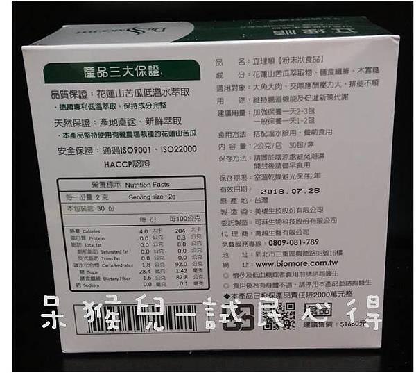 裡面的成分有:花蓮山苦瓜萃取物、膳食纖維和木寡糖