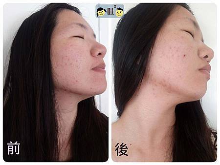 側面:側面加脖子本來荳荳非常多,而且是長出來很久都不會消退的那種。一週後自己看前後對比照,很驚訝地發現脖子的痘疤有變淡,也沒有那麼多蠢蠢欲動要發芽的荳荳。