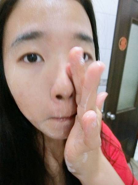 然後就可以加水搓揉有泡之後就可以開始洗臉