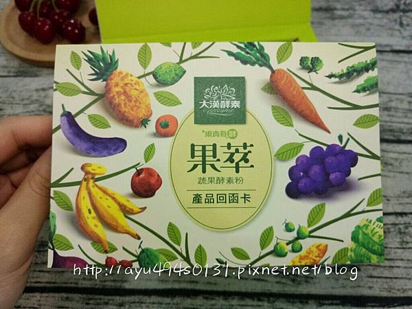 大漢酵素果萃蔬果酵素粉的產品回函卡超級可愛的!回覆使用心得和建議,投入郵箱寄回還會提供一份精美回禮唷!!