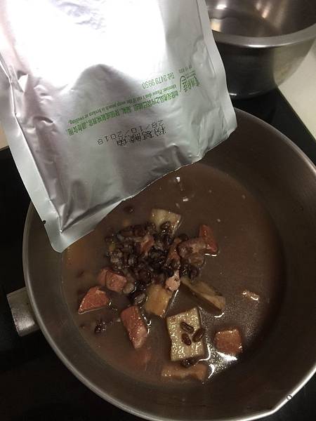 我使用剪開鋁箔袋倒入鍋內的方式加熱