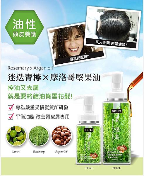 迷迭香、青檸檬、有機摩洛哥油、椰子油和抗屑因子等 5大精華