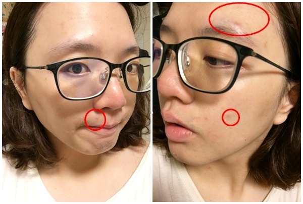 眉上的一顆痘痘,還有額頭、臉頰也有數顆痘痘,