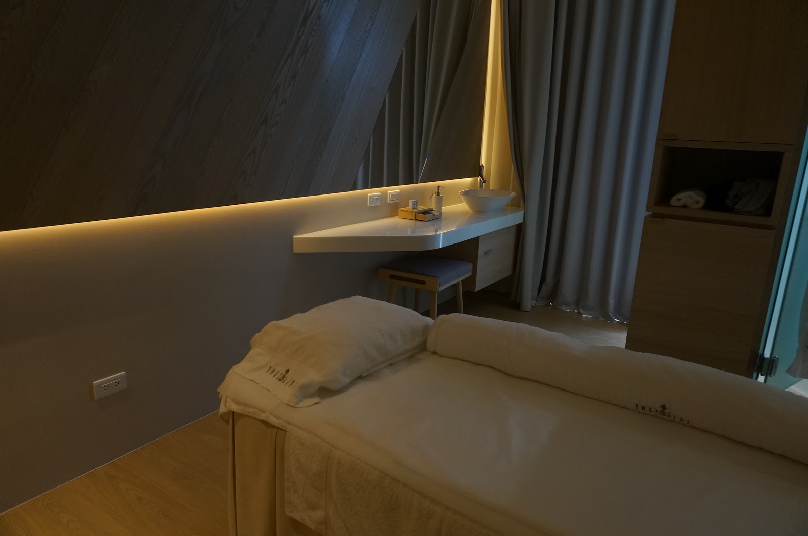 一入房就聞到調和過的精油香氛,非常放鬆心情,調整呼吸並感受芬香,沉澱心情,這就是今天要按摩的床,旁邊有超舒服的沙發,可以在上面先休息一下服務人員會進來諮詢最近身體的狀況。
