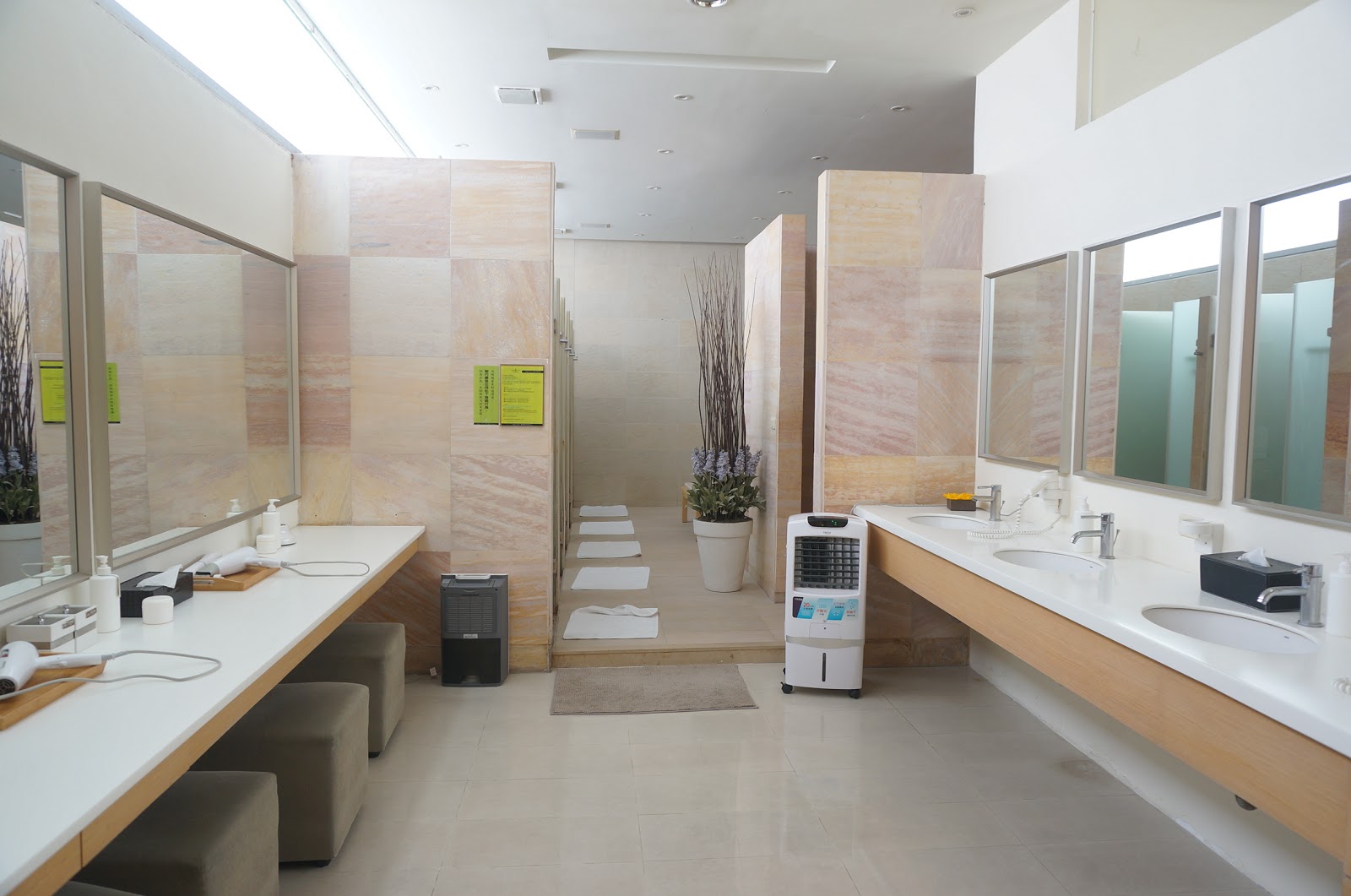 接下來進入正題,今天做的是孕婦瑜伽+SPA課程,首先可以先在更衣室進行更衣,換上舒服的衣服,更衣室和淋浴間都超乾淨,設備也很完整,吹風機、洗澡乳、洗髮精,為了保有客人的隱私,淋浴間都是有門的唷!