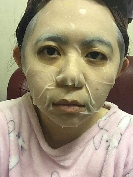 保濕緊緻面膜材質是屬於偏厚感覺上比較不容易被撕裂,厚的面膜還可以如此服貼滿不簡單的