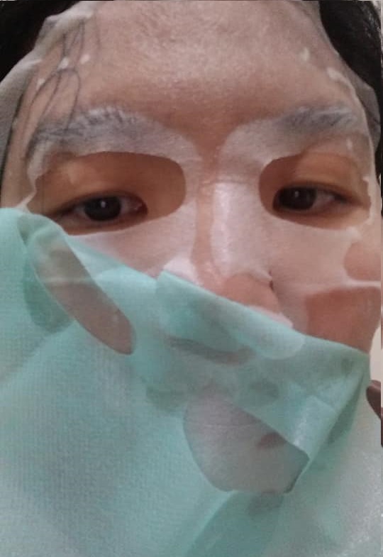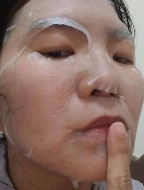 當天敷完淨光高效保濕蠶絲面膜後~敷完後肌膚仍有殘留的保濕精華液~