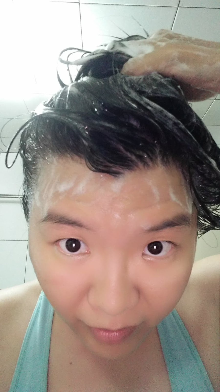 使用上不太需要加水, 可以直接在手上揉開, 感覺是比較水感滑滑的, 不太會起泡, 大概就像這樣, 或直接在頭皮上塗抹清潔也可以,