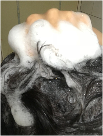 洗後沖洗時,頭髮蓬鬆有彈性頭皮清爽但髮絲會有些乾澀