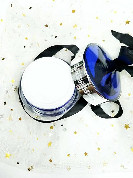 光采煥白精華霜的外包裝是寶藍色配銀色的設計