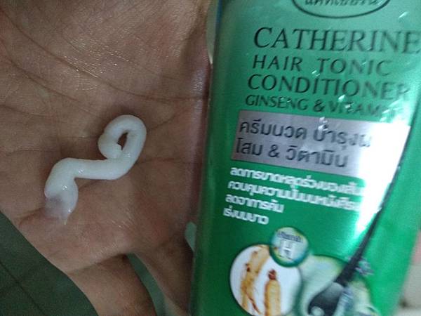 乳白色的乳霜,幫助頭髮滋潤有彈性!在手中化開時不會覺得油膩乾…沖洗時也很快就可以沖洗感覺!