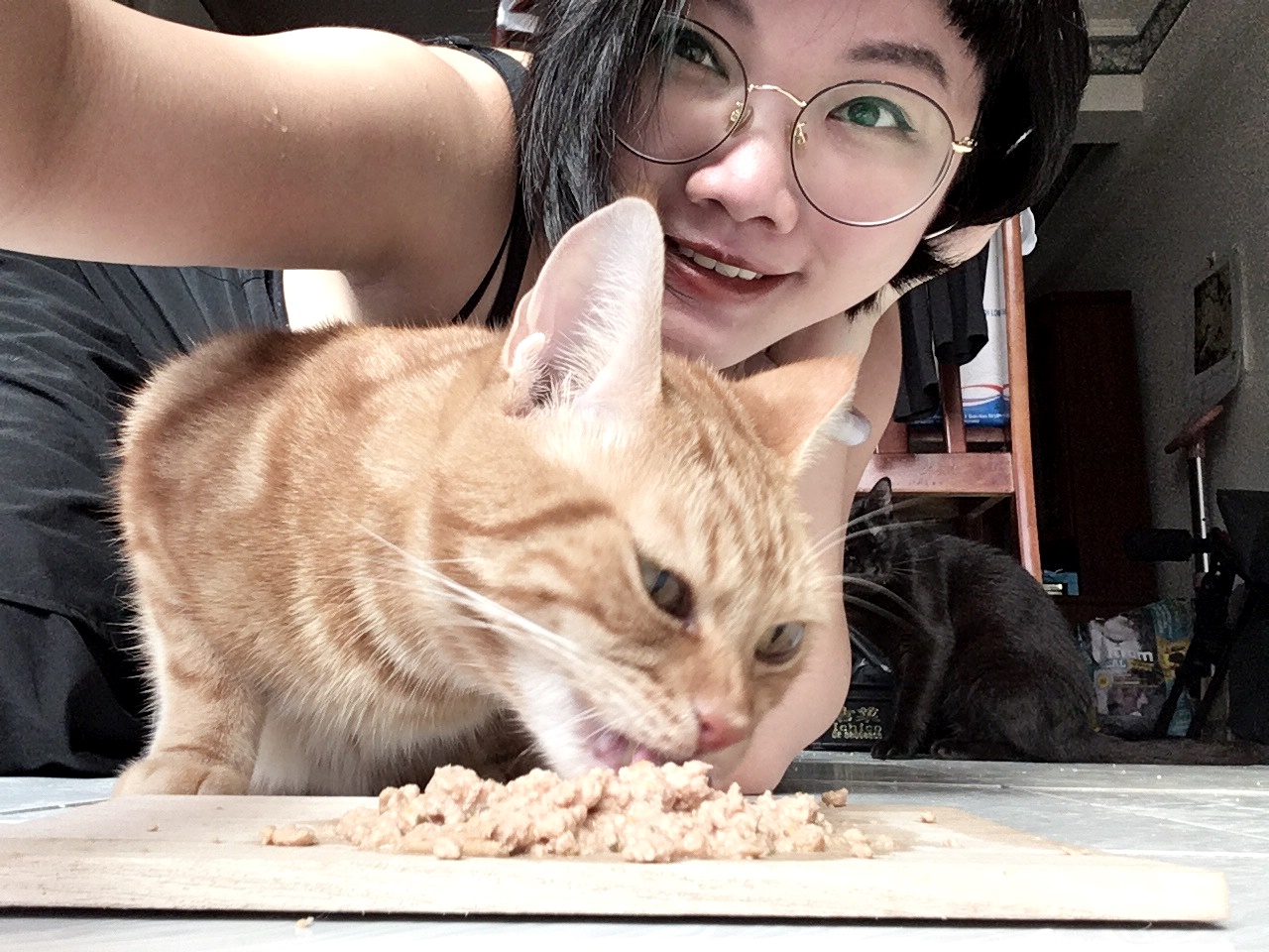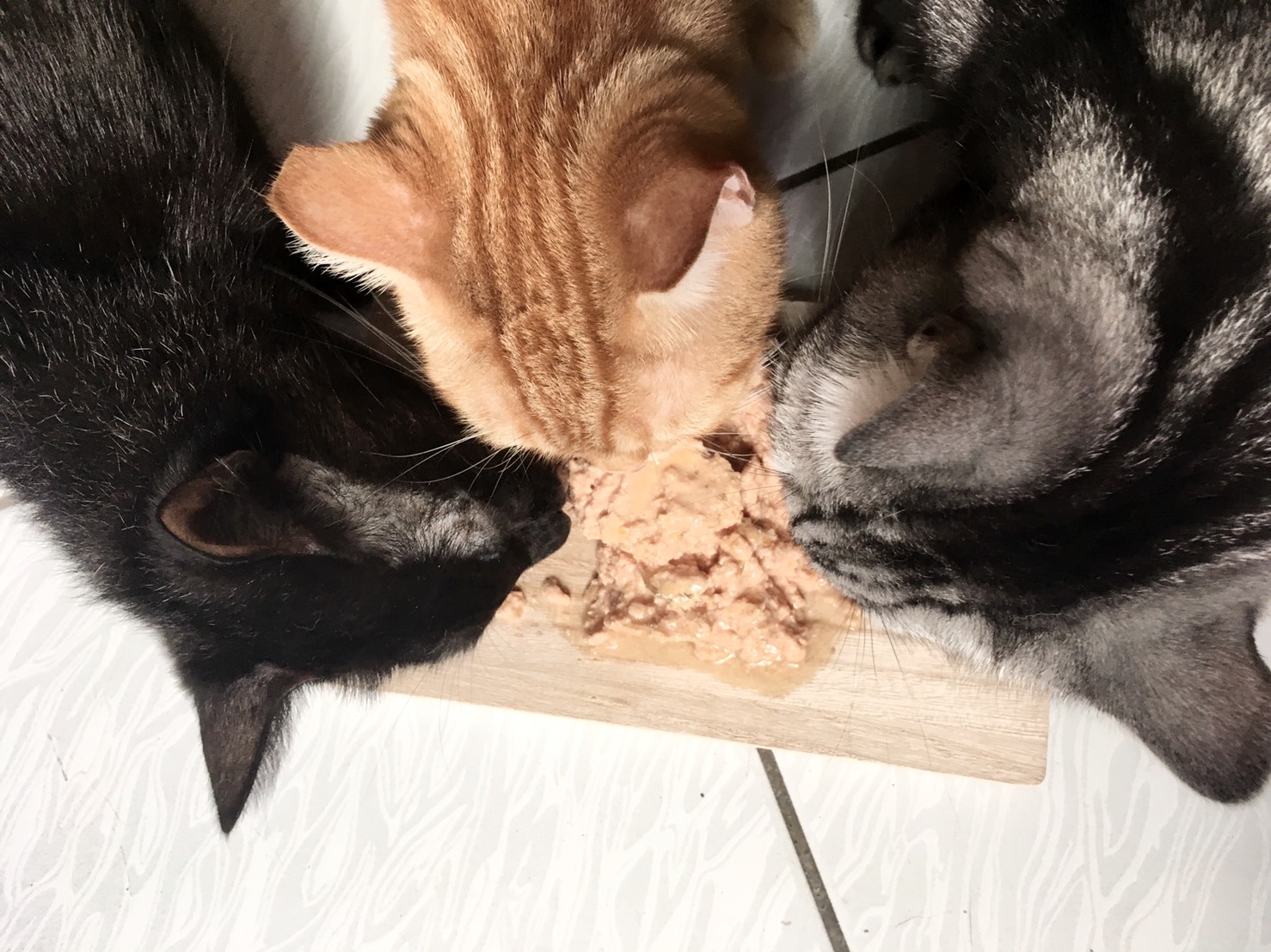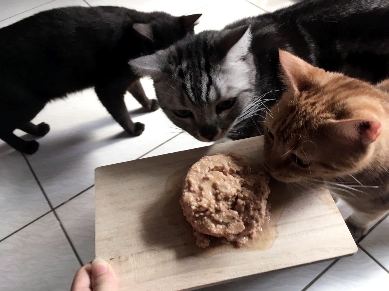 不過實際開給貓貓們享用,三隻都超愛,薑薑也是特開心的吃啊!瞧他們爭先恐後爭先恐後(笑)