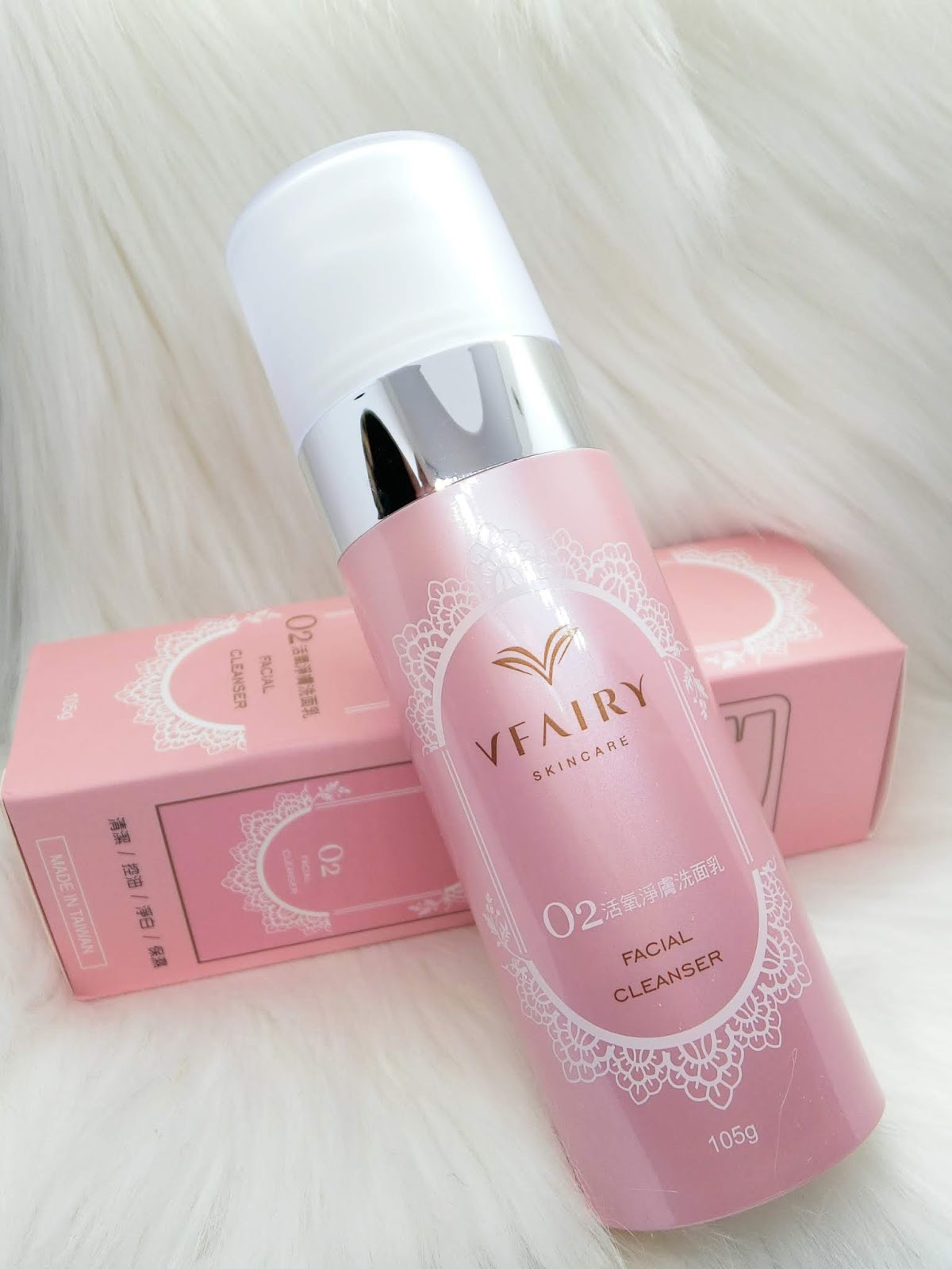 這次體驗的是Vfairy薇菲爾O2活氧淨膚洗面乳,薇菲爾品牌名是V仙女的意思,非常可愛,V則是取自創辦人的英文名開頭,美美的LOGO是希望呈現出仙女展開翅膀的優美,所有的產品包裝也都是非常浪漫唯美的的外型,本仙女非常尬意。